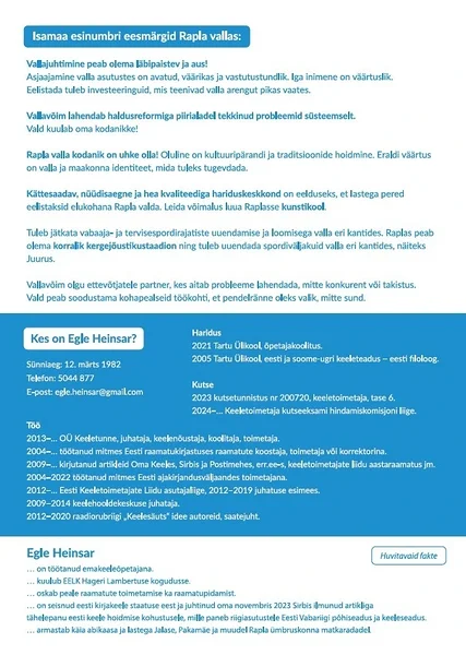 Vallajuhtimine peab olema läbipaistev ja aus! Asjaajamine valla asutustes on avatud, väärikas ja vastutustundlik. Iga inimene on väärtuslik.