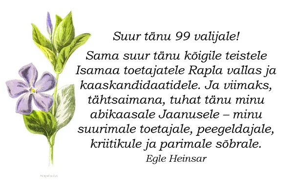 „Rapla vallas tuleb rohkem keskenduda perede hoidmisele – kohapeal peab saama nüüdisaegse ja tugevapõhjalise hariduse lasteaiast üldharidustee lõpuni. Lisaks pean oluliseks, et valla huvid oleksid kaitstud ka riigi tasandi otsustes.“